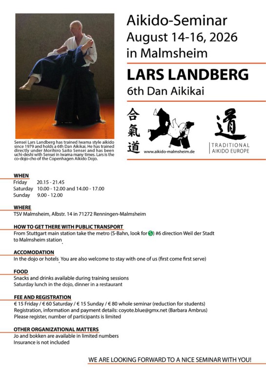 Nächstes Seminar bei uns/ next seminar in our dojo: